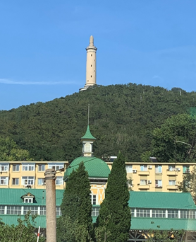 一行はバスで203高地に赴き、車窓からNHKスペシャルドラマ『坂の上の雲』にも登場した白玉塔が目に入ると思わずシャッターを押しました。そして、バスを降りると203高地の山頂につながる坂道を登っている途中、ガイドさんから、実はこの坂が『坂の上の雲』の坂であると紹介されました。およそ8年前に見ていたあの人気ドラマのタイトルの意味を確認できたことは私にとって予想外の収穫でした。